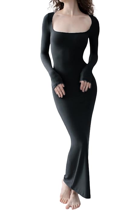 Raruxxin Women Square Neck Long Sleeve Dress Ribbed Knit Backless Bodycon Soft Lounge Maxi Dress Spring Autumn Sexy Dress At Amazon Women S Clothing Store